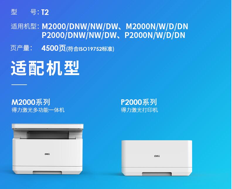 得力T2硒鼓墨盒碳粉M2000DW原裝M2000DNW M2000N NW P2000D P2000W 2000DN激光復(fù)印機(jī)打印機(jī)粉盒通用易加粉